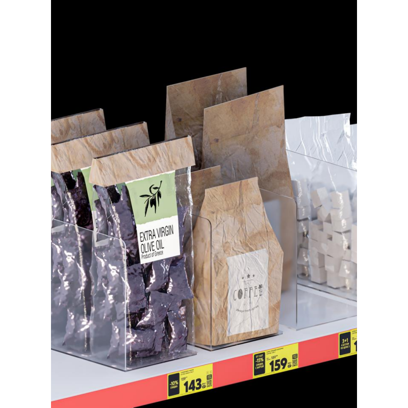 L-образные разделители предназначены для зонирования полочного пространства. Благодаря широкому основанию 200 мм L-образный разделитель фиксирует выложенный товар в отведённом для него пространстве. Используется на полках глубиной 500 мм. Разная ширина сторон разделителя: одна 150 мм, другая 200 мм позволяет менять высоту разделителя и ширину основания, варьируя таким образом выкладку под размер разных товаров.